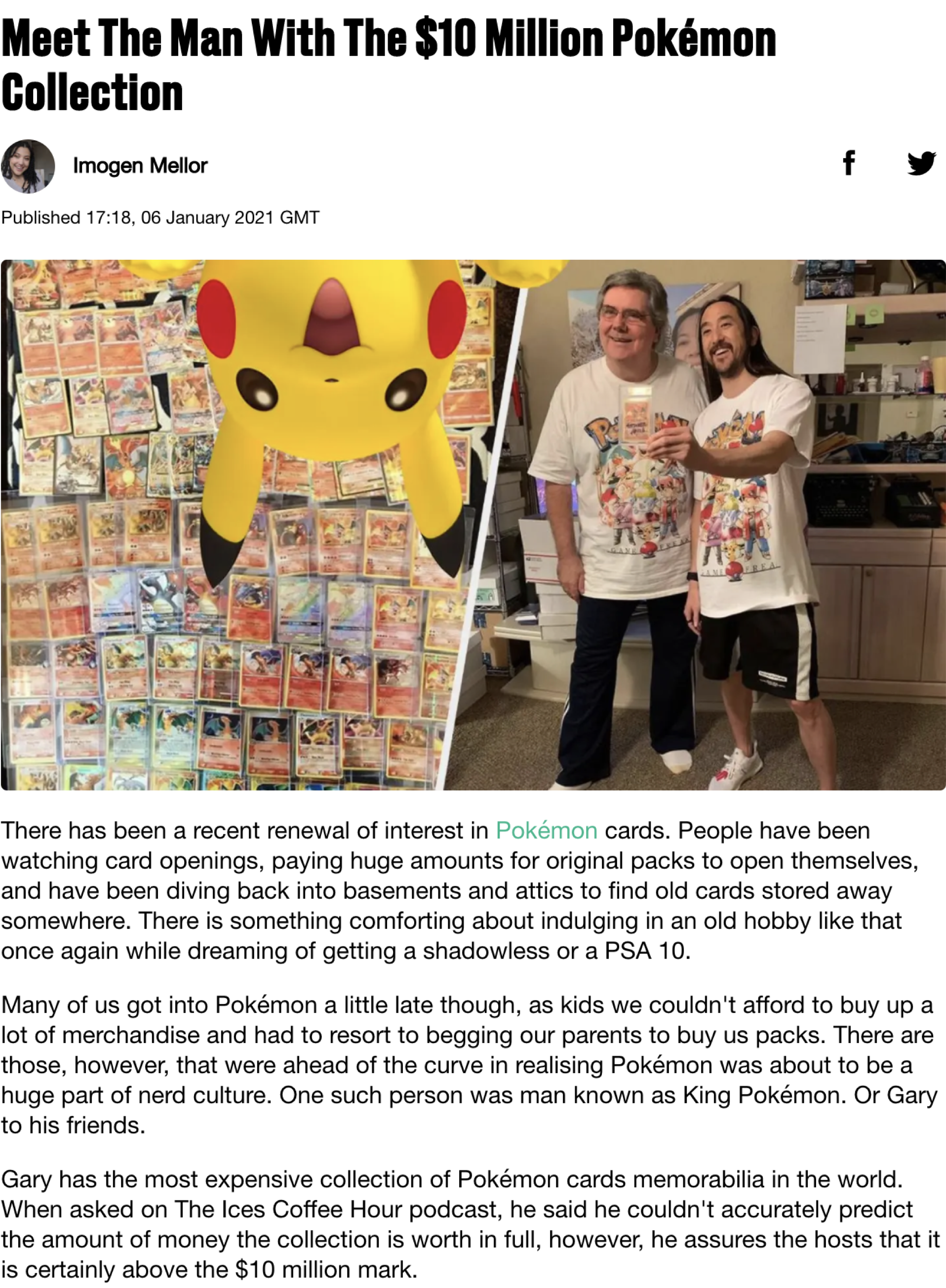 Gary “King Pokémon” or "Gary" from Pawn Stars Haase holds this royal title thanks to the decades of obsessive collecting of the world’s most valuable stash of cartoon animal cards, worth at least $10 million. Gary made an appearance on Pawn Stars which today is the second most-viewed segment in show history with over 11 million views and he has started to become a recurring guest on massive YouTube channels including Leonhart, Anthony Padilla from Smosh, and most recently Logan Paul.